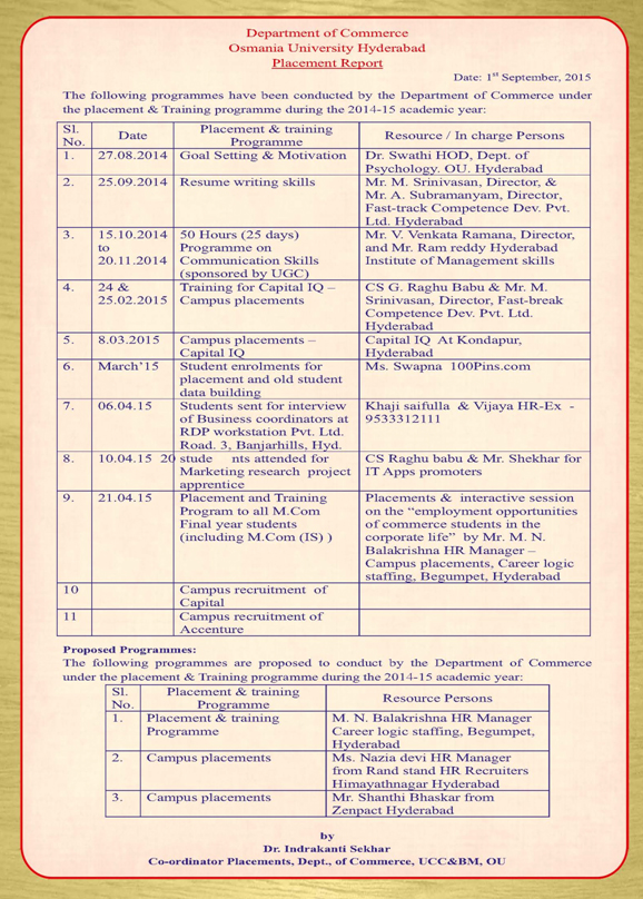 | 15-03-2022 | Interaction of Training and Placement Officers of Campus & Constituent Colleges of OU | HRDC, OU | Attended and given inputs |